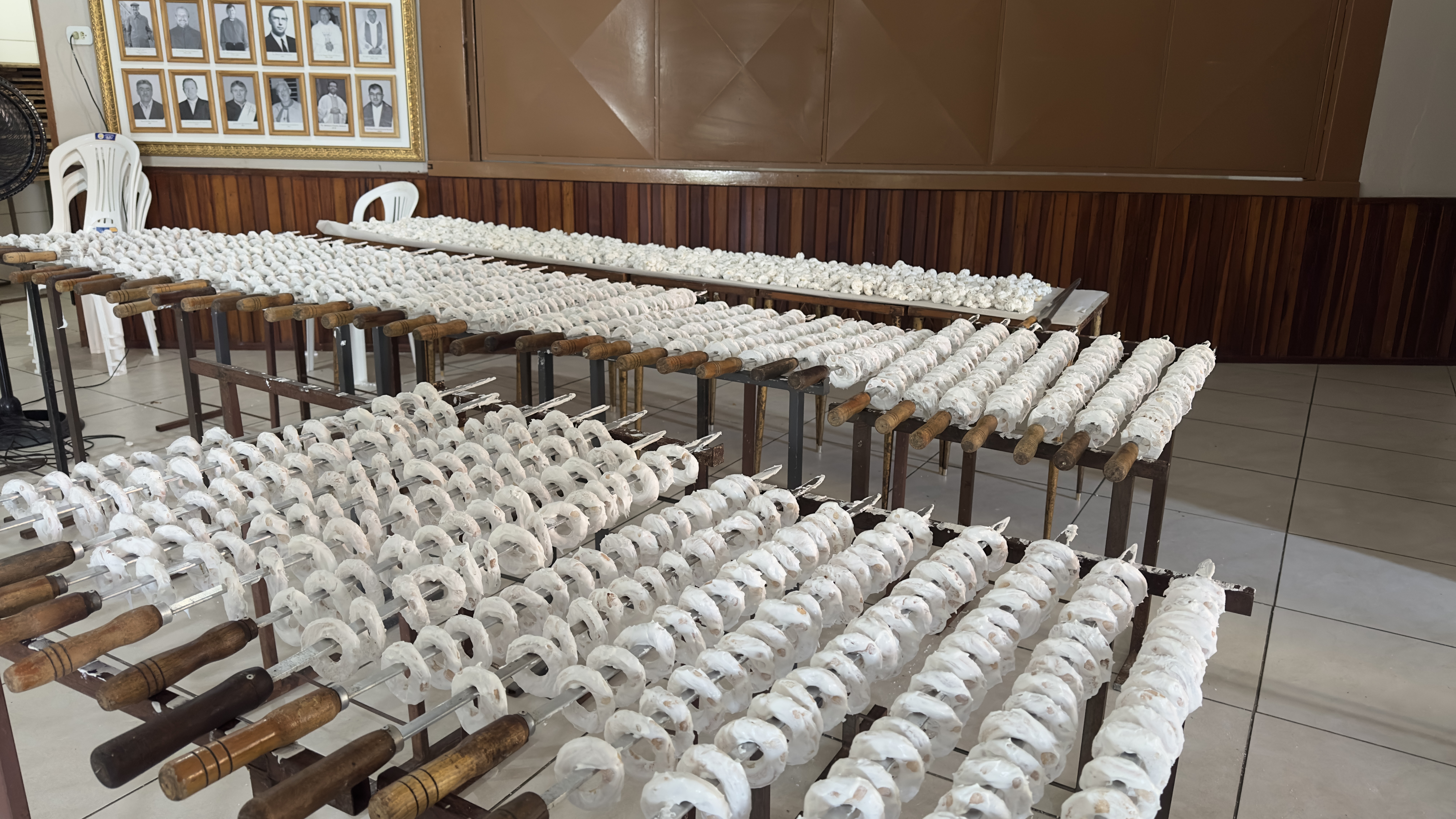 A produção do grupo segue até o dia 1º de fevereiro. Até lá as bolachas podem ser adquiridas na Secretaria da Paróquia ou nas comunidades, durante as Missas da Trintena. Além das bolachas, está sendo comercializada a rifa, também a camiseta da festa (a 40 reais) e os votos das meninas que concorrem à Boneca da festa. Os valores arrecadados serão revertidos para manutenção da Paróquia, entre as quais a revitalização interna da Igreja Matriz.