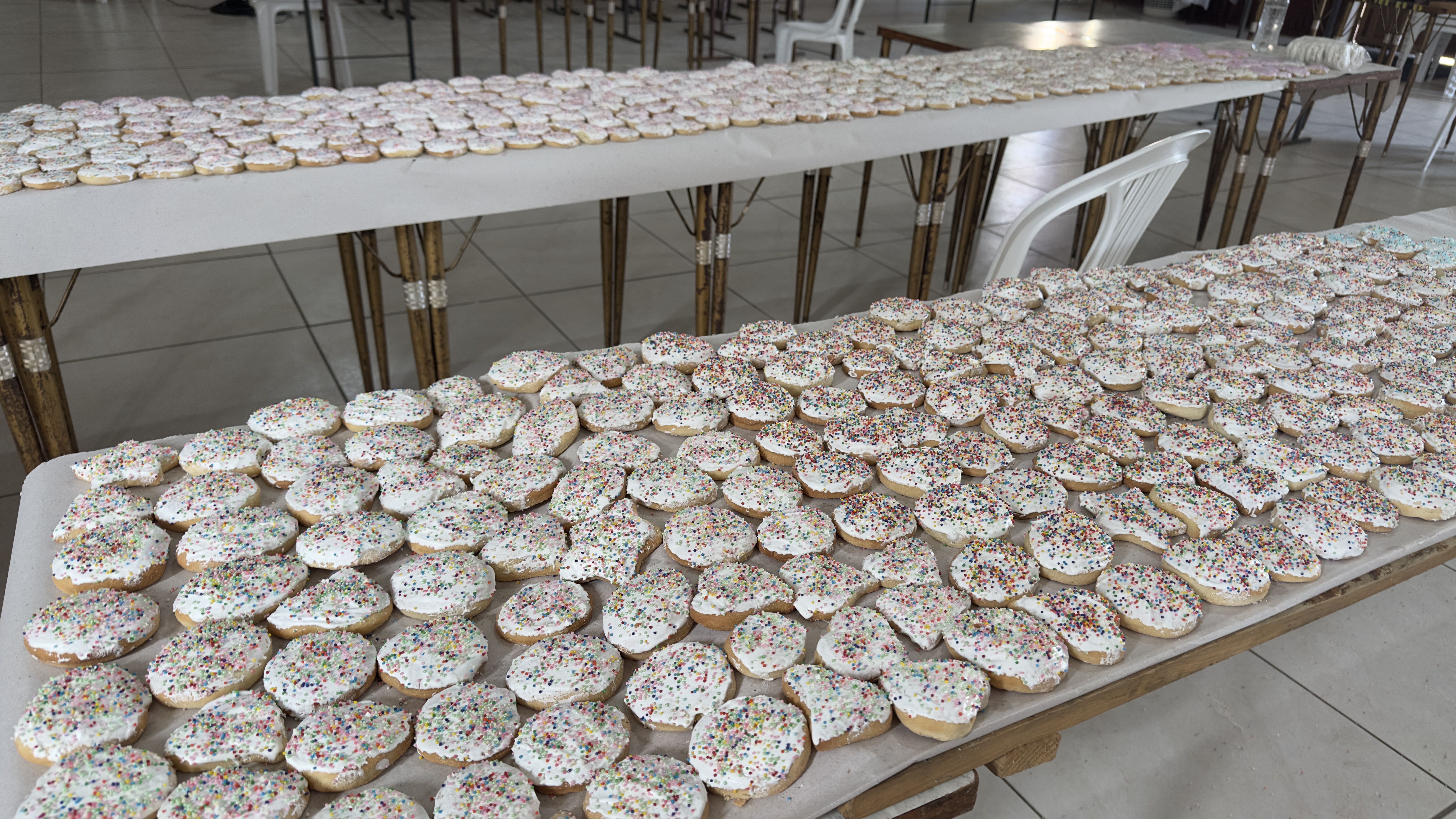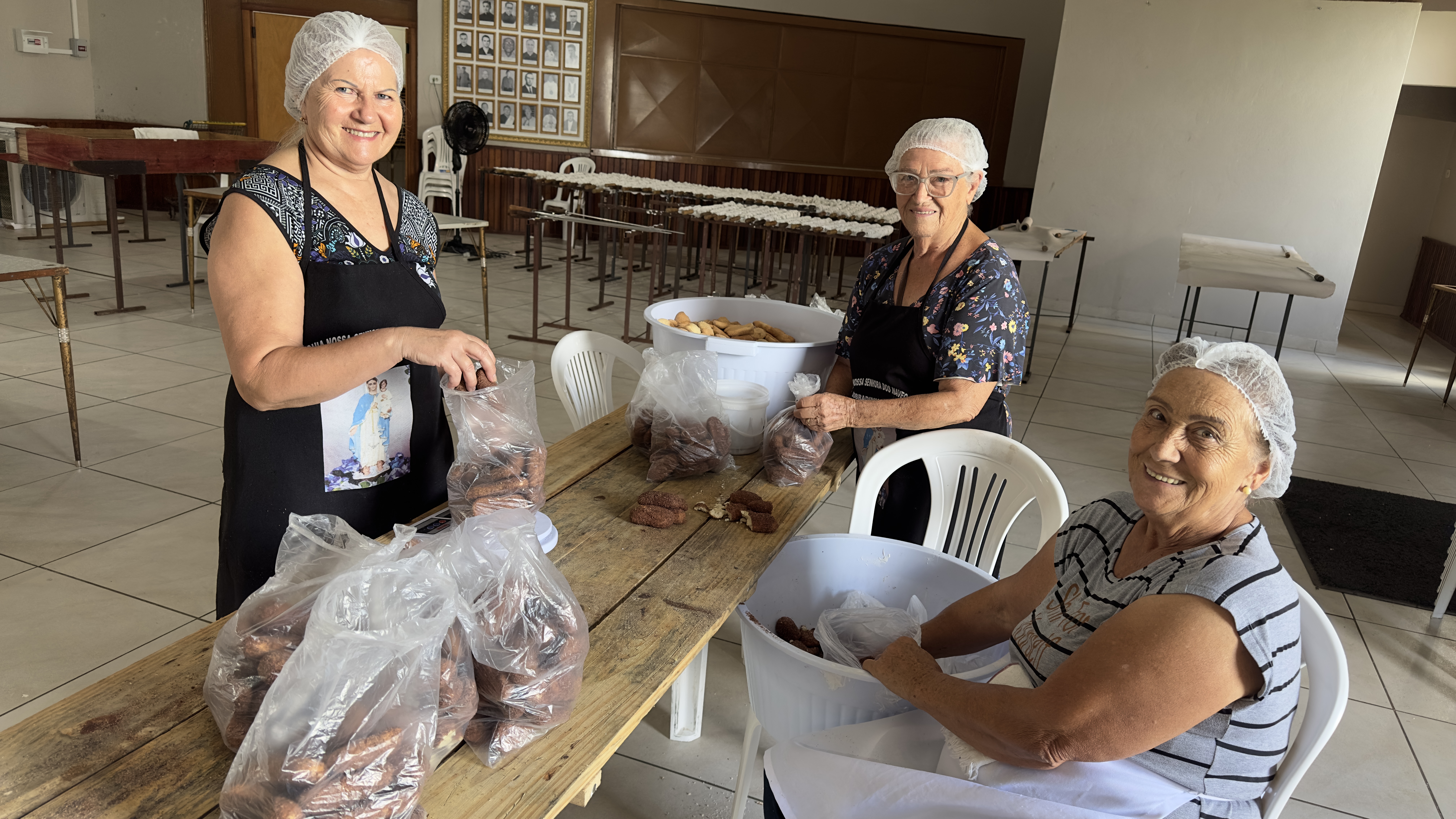 Desde o dia 3 de janeiro, pelo menos duas dezenas de mulheres se revezam para trabalhar com a mão na massa e colocar no forno quilos e mais quilos de bolachas. Neste ano, conforme a coordenadora Renete Menegazzi, são sete variedades que estão sendo comercializadas, ambas a 12 reais o pacote. Além dos tradicionais ingredientes, à receita acrescentam uma dose de amor e outra de fé.