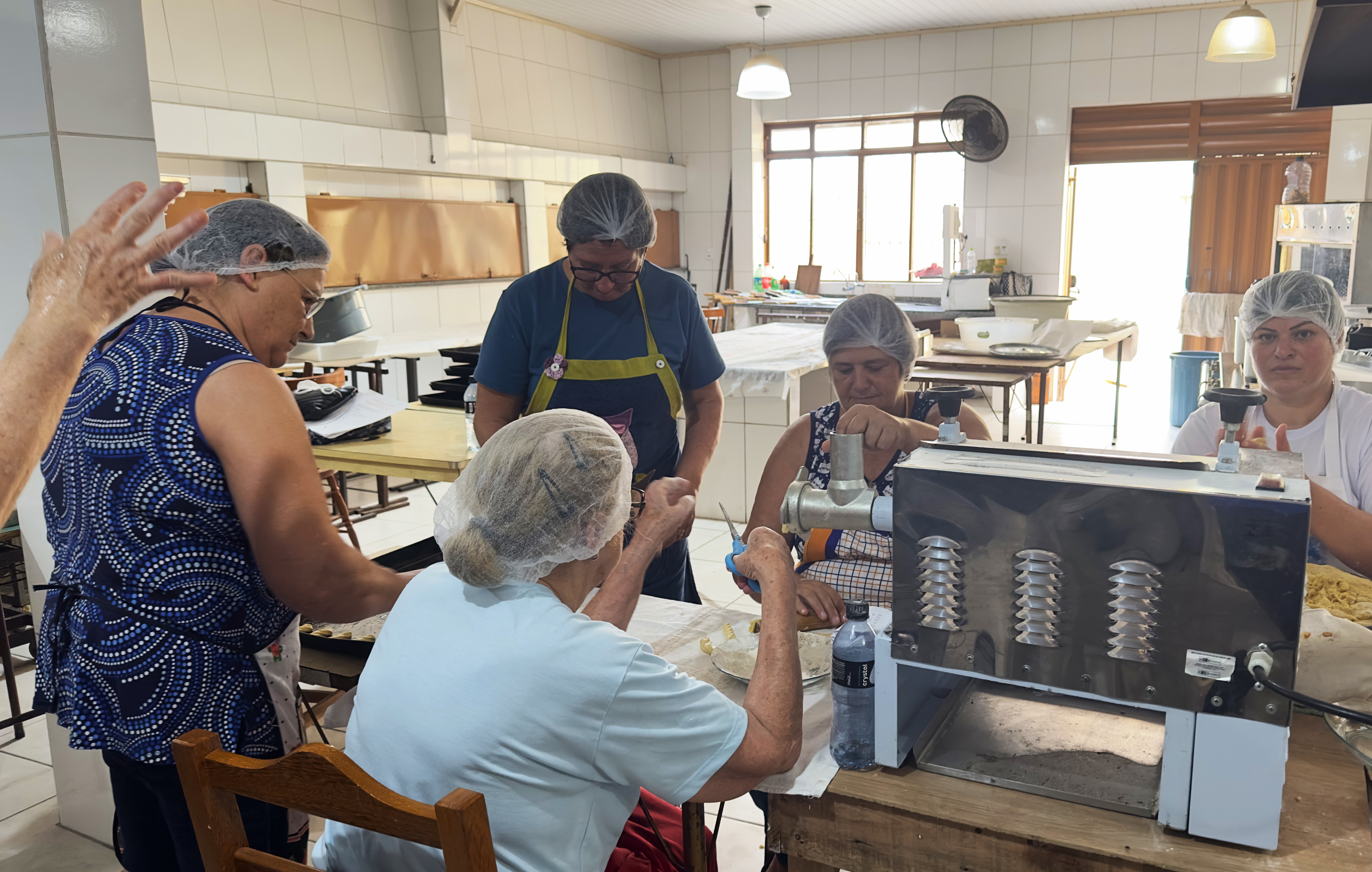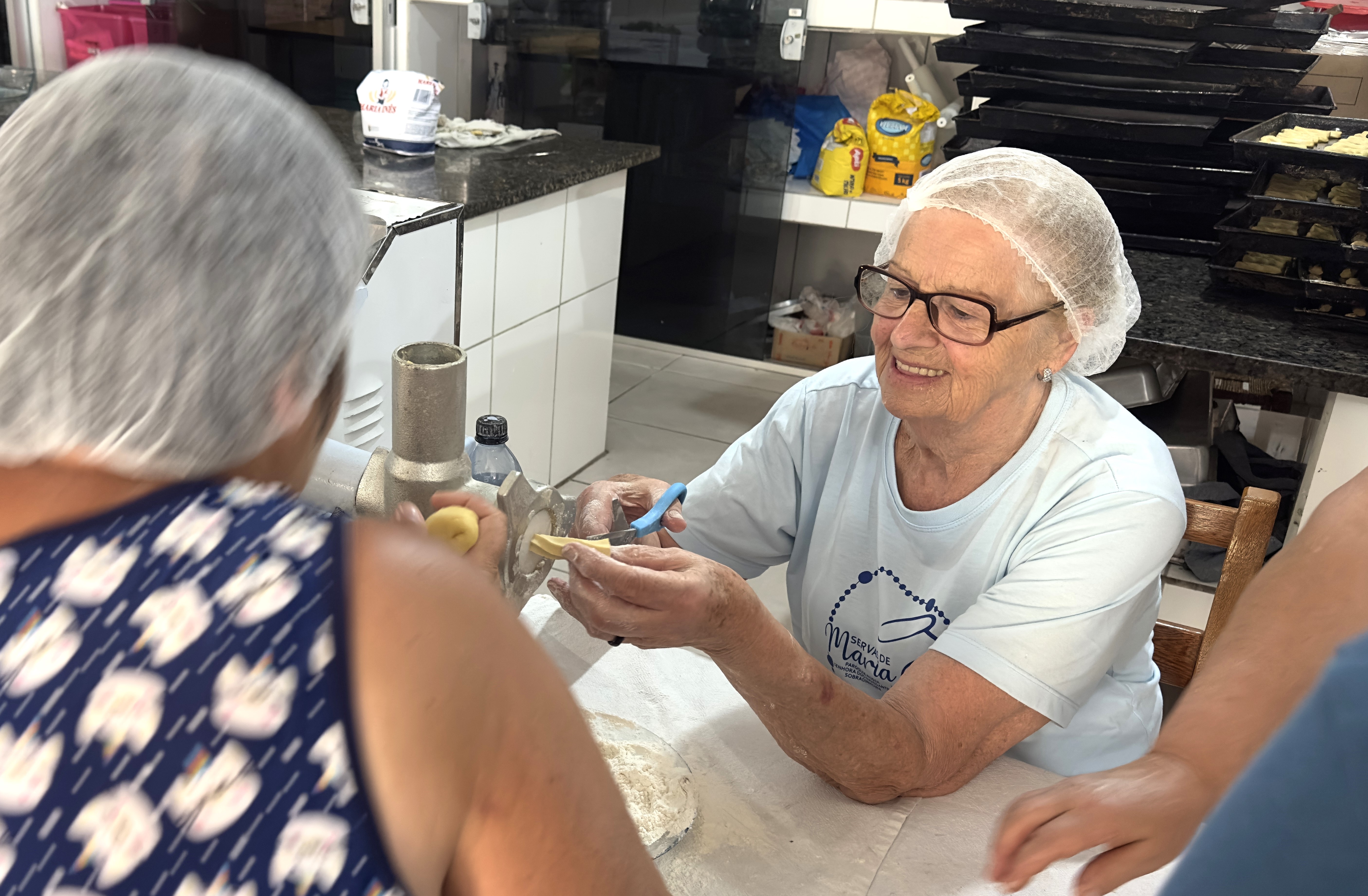 Entre as diferentes faixas etárias, as voluntárias fizeram da cozinha do Salão Paroquial uma linha de produção, com cerca de mil pacotes já preenchidos, mas também local de reza, cantoria e integração. Para Neusa Peil, de 80 anos, participar da atividade é uma forma de doar um pouco de si. “É muito bom, muito gratificante. Nossa Senhora sempre está do nosso lado. Todas as mulheres que auxiliam são maravilhosas, sem este auxílio não se faz nada sozinho. Tenho vontade de trabalhar muito ainda”, salienta.