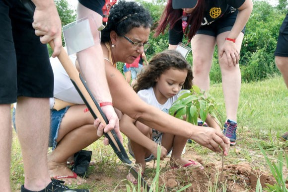 Enquanto uma equipe percorria ruas para recolher lixo e eletrônicos, outra plantava cem mudas de ingá-feijão no Residencial Viver Bem. Por lá, a pequena Helena Cortes Costa, de 6 anos, aprendia a importância de cuidar do meio ambiente. Com a orientação de integrantes do Rotary Club Avenida, do Grupo Escoteiro Santa Cruz e de moradores, a menina plantou uma das árvores. “É de extrema importância conscientizar as pessoas, principalmente as crianças, que é disso que depende a nossa sobrevivência”, comenta a avó, Bia Lima, 55, que reside no local.