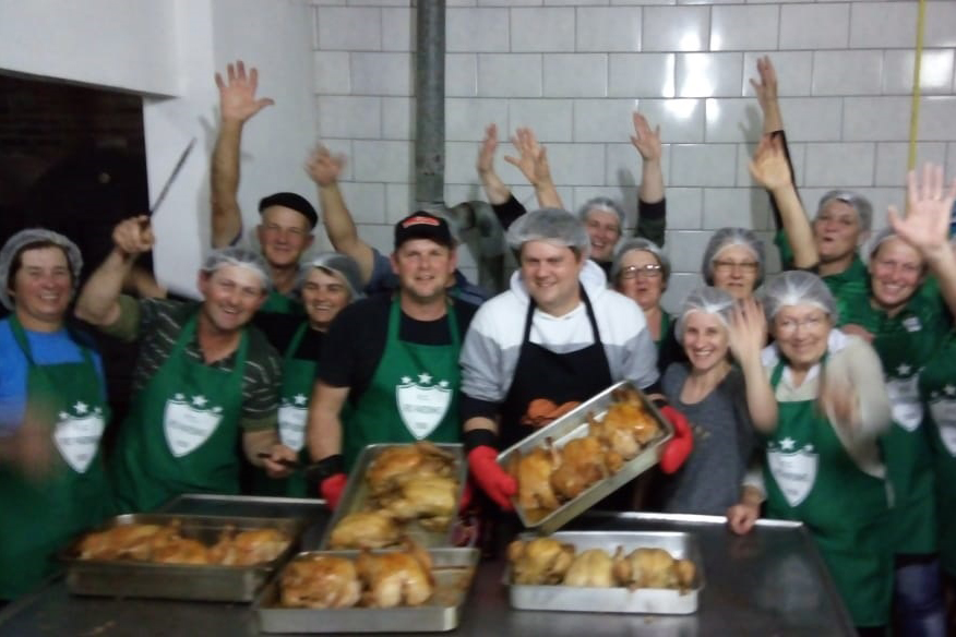 Um pequeno exército de 50 voluntários trabalha desde a meia-noite deste domingo, 2, para garantir o prato principal do 2° Festival Nacional da Galinha Recehada. Ao todo, foram preparadas 750 galinhas, na festa realizada na Comunidade Evangélica de Rio Pardinho.