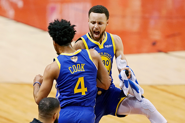 Stephen Curry acrescentou 23 pontos pelos Warriors, que anotaram os primeiros 18 pontos do segundo tempo para encaminhar a vitória. “Quando chegamos a esta etapa mostramos nosso DNA”, afirmou Curry, que pareceu ter uma lesão na coxa esquerda no primeiro tempo e chegou a errar seis arremessos consecutivos no começo do duelo.