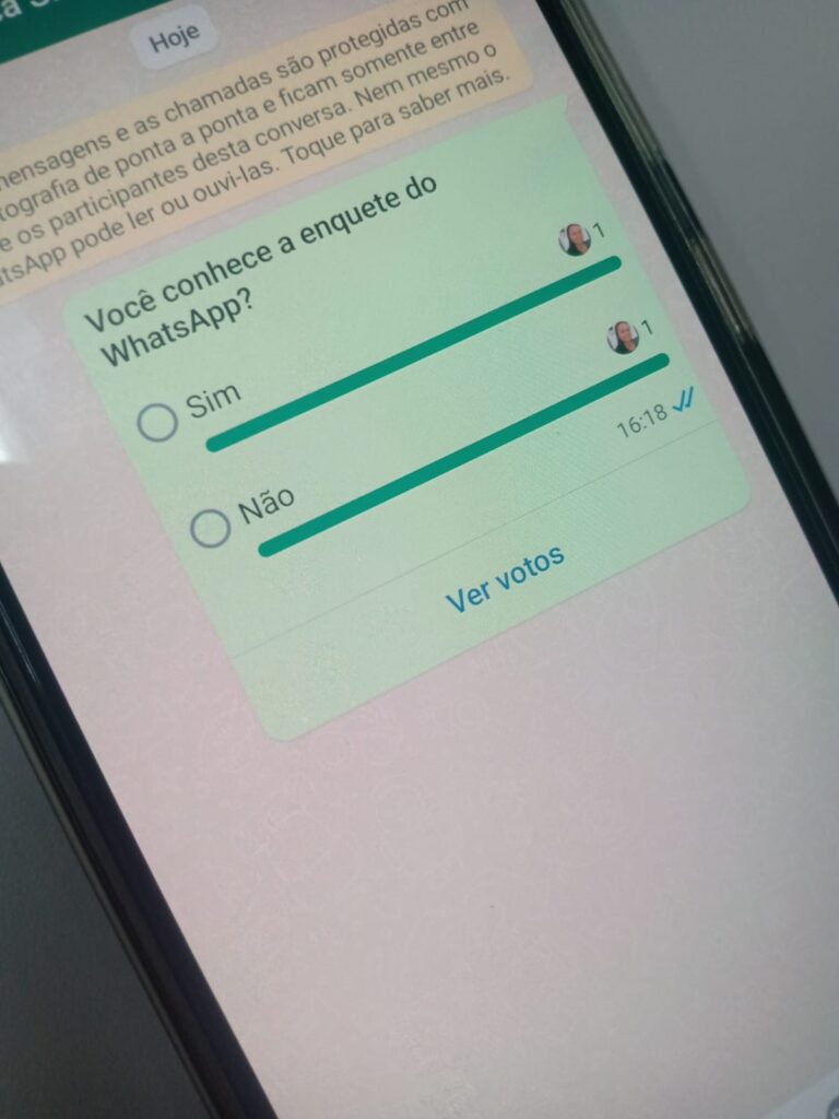 O WhatsApp começou a liberar nessa quarta-feira, 16, um novo recurso aos usuários. A possibilidade de criar enquetes nas conversas e permitir que os membros votem nas opções já está disponível em alguns aparelhos. “Agora, tomar decisões no chat em grupo ficou ainda mais fácil e divertido”, disse a empresa no perfil do Twitter.
