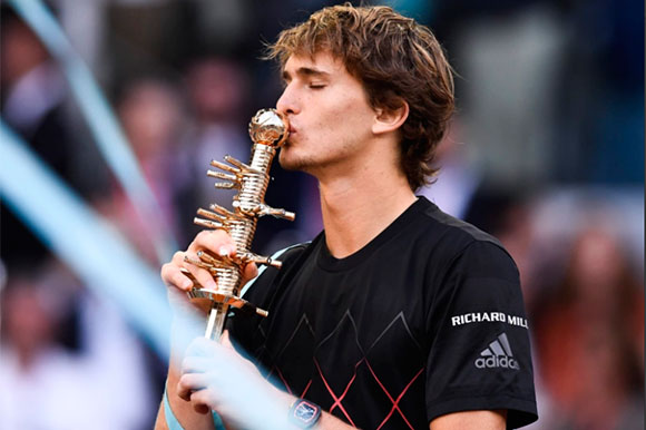 Atual terceiro colocado do ranking mundial, Zverev também ganhou o seu segundo troféu neste ano e também o segundo consecutivo, depois de vencer na semana passada o Torneio de Munique em meio a esta temporada de saibro.